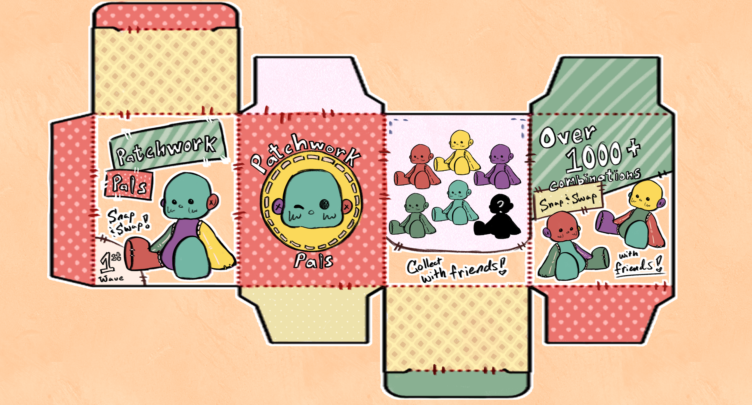 Patchwork Pal lives in a world where the friendships created physically changes the person. Throughout their existence, the relationships they form mark the person, and each mark and replaced limb is a sign of where they came from and who has changed them. A reminder that a single person can change your life for good.